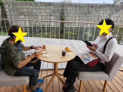 お洒落な空間のCaféでくつろぐみなさん。