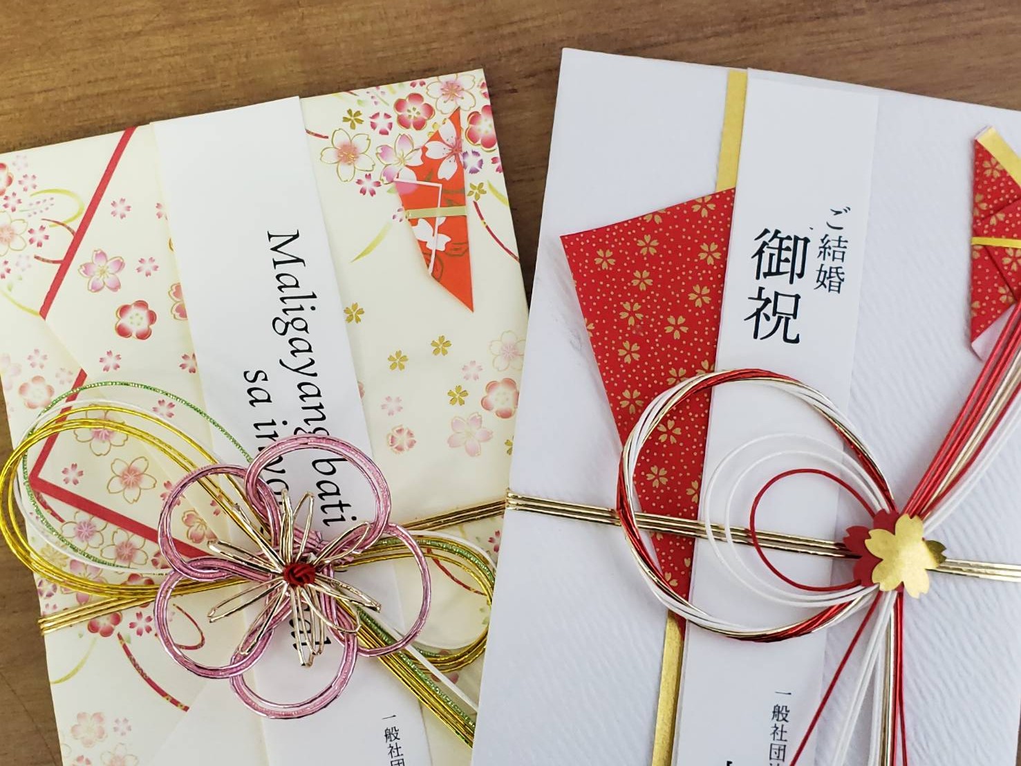 イキなスタッフからは熨斗(のし)にタガログ語で「結婚おめでとう」と