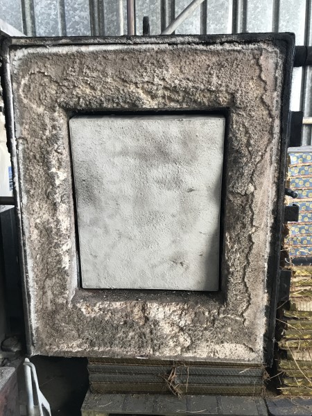 交換理由は、約3年間毎日600度ほどで燃えている焼却炉の扉が