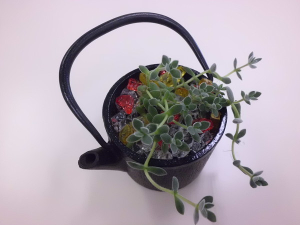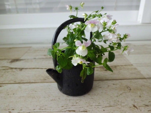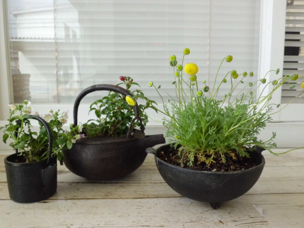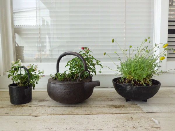 鉄瓶は重量感があるので、可憐な花を活けるのにぴったりだと思いました。