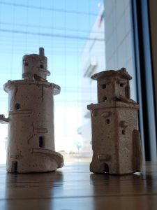 愛嬌たっぷりのロボットの顔も、謎めいたカギの集合体も全部、廃棄物を利用していて、「再生アート」と名づけられています。