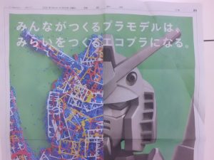 プラモデルの枠(ランナー)とバンダイの新聞広告を見てもらいました。