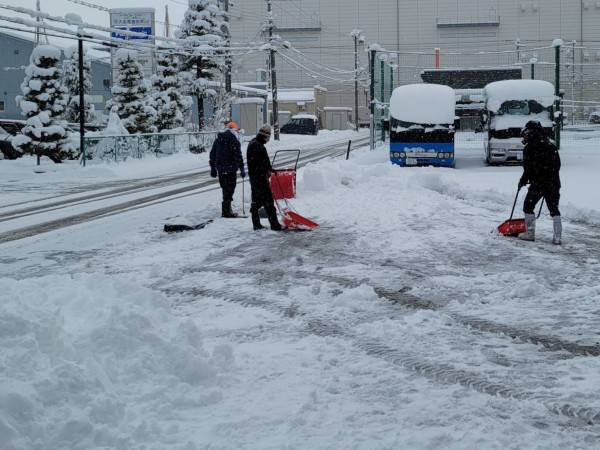 今朝の準備体操を兼ねて除雪作業してくださっていました。