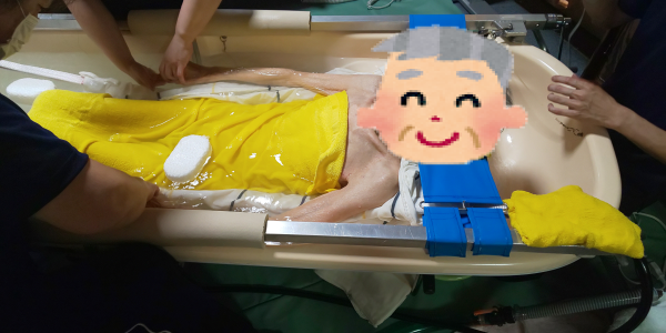 介護福祉士さん、看護師さんの3名さんで、ご準備と入浴と片付けで50分弱。