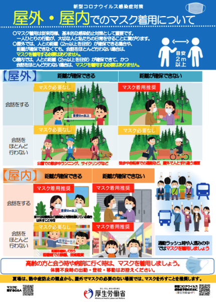 屋外と屋内に分けて、どんな時にマスクが必要で、どんな時にマスクが不要かが具体的に書かれていて分かりやすかったです。