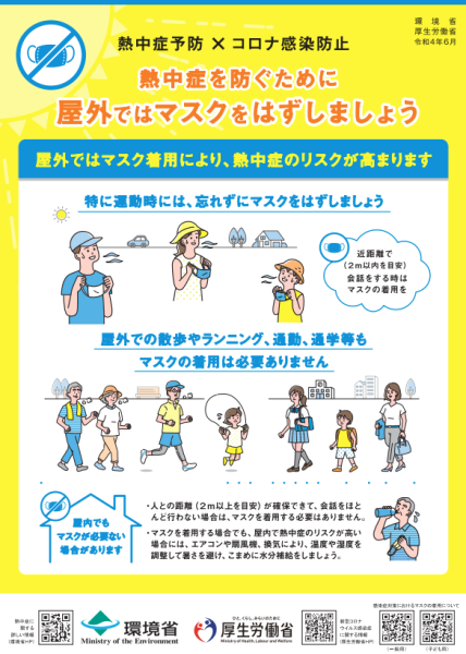 →「熱中症を防ぐために屋外ではマスクをはずしましょう」(PDF形式)