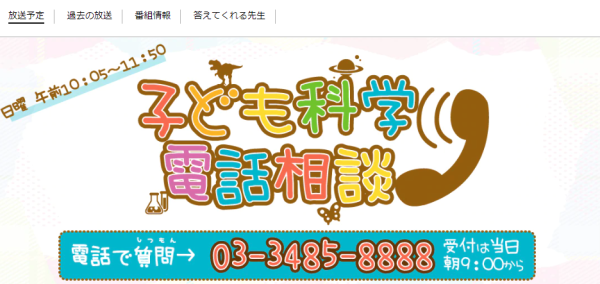 ・NHKサイト→「子ども科学電話相談」