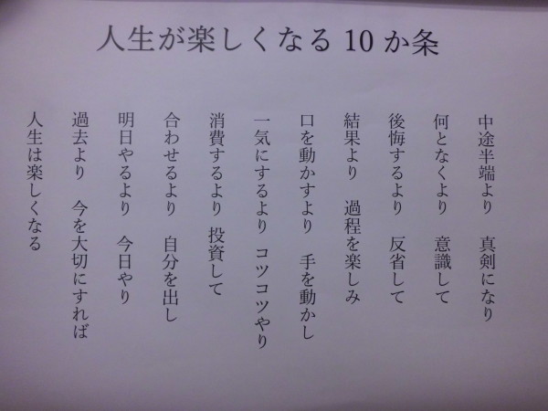 朝、作業室の壁に「人生が楽しくなる10か条」という紙が一枚貼ってありました。