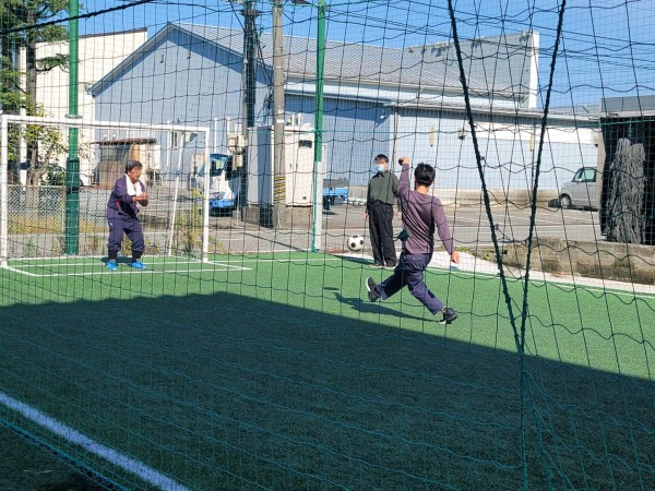 ちょうどフットサルコートが職場にありますので、私たちメンバーとサッカー。