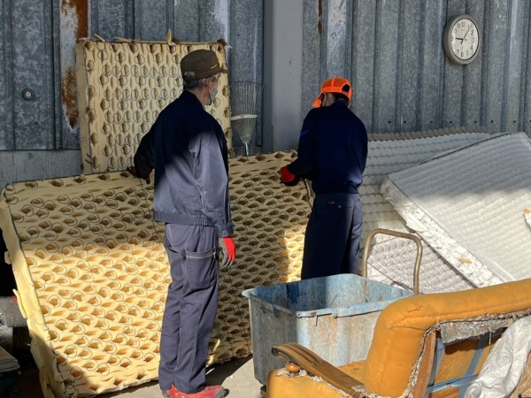 マットレスがヤードに運ばれてきました。