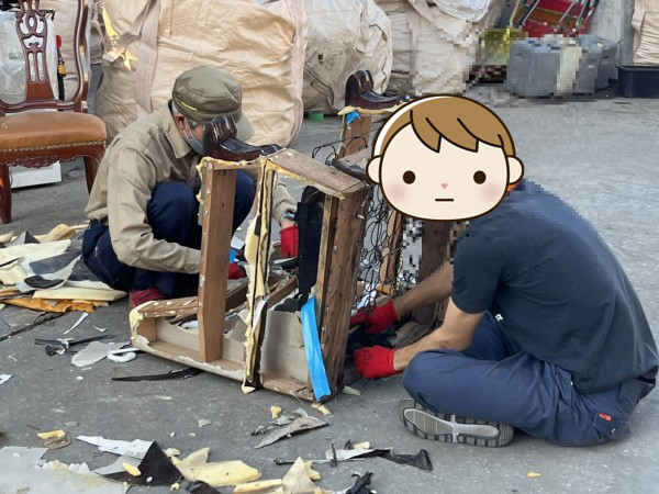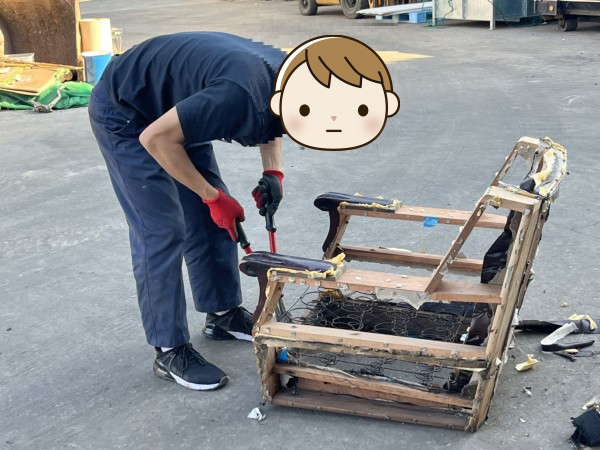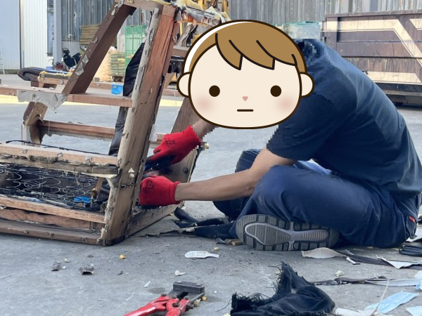 イスも同様で、分解して材料ごとに分けます。