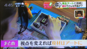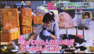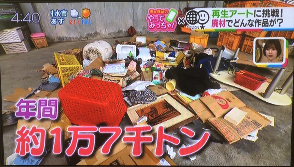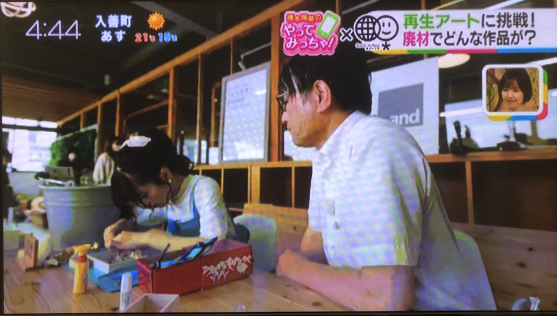 5/30(ゴミゼロの日)に放送された「いっちゃんKNB」の特集「AKB48橋本陽菜のやってみっちゃ」でコラーレ富山の利用者さんが制作する「再生アート」を取り上げていただき、はるぴょん(橋本陽菜さんの愛称、以下はるぴょん)と一緒に再生アートを作りました!